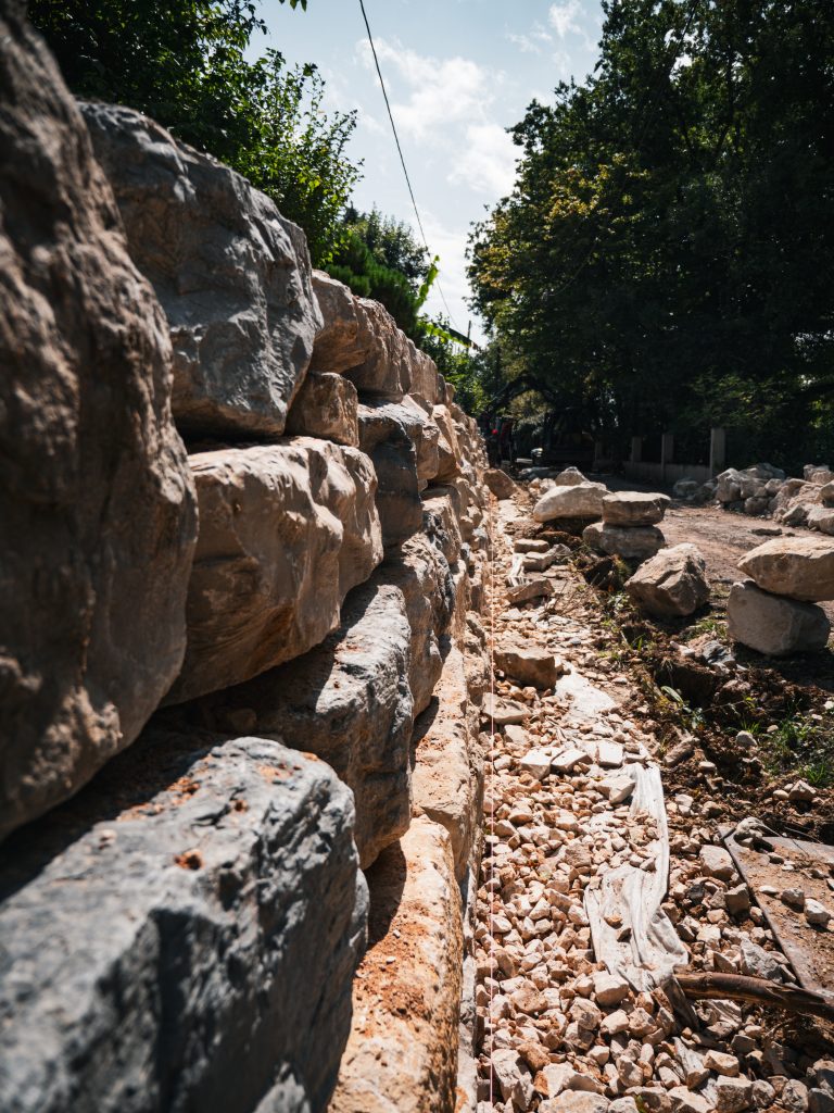 - Construction : élévation de 50 mètres linéaires de soutènement sur 1,6 mètre de hauteur.